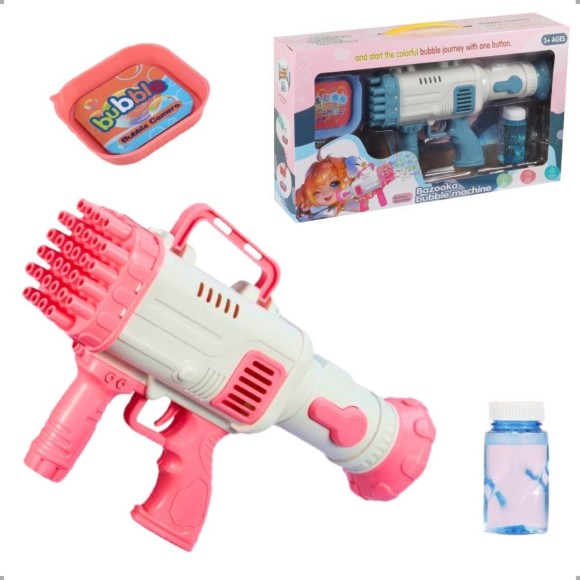 Com funcionamento elétrico e um design moderno, essa pistola cria uma verdadeira chuva de bolhas com suas 32 saídas, encantando crianças e adultos em qualquer lugar.