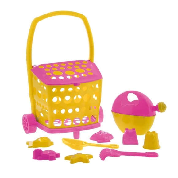 Carrinho Leva e Traz 10 Peças p/ Brincar Jardim e Praia Feminino