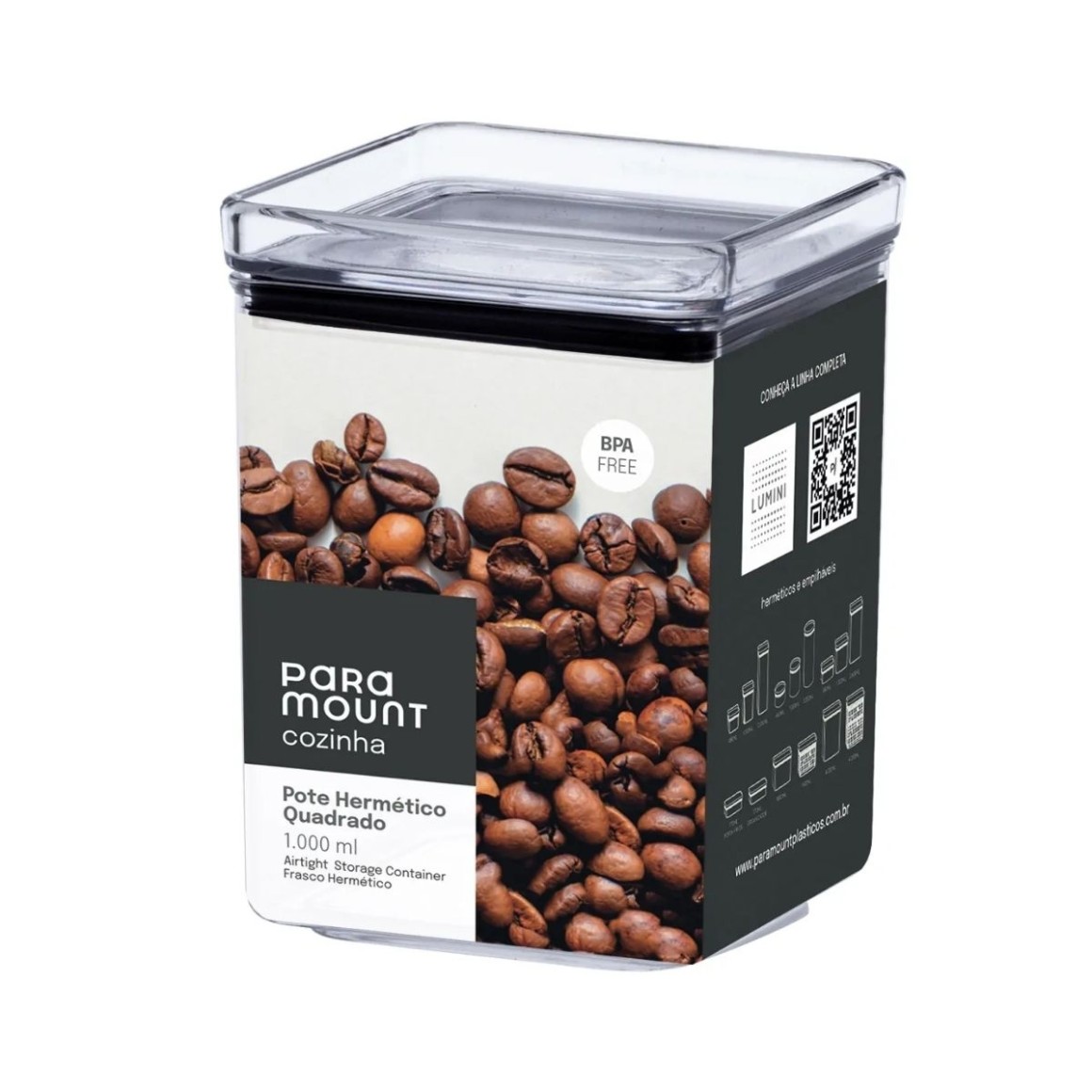 Mantenha seus alimentos frescos e bem organizados com o Pote Hermético Lumini Quadrado da Paramount. Com capacidade de 1 litro, ele é ideal para armazenar grãos, massas, biscoitos e outros alimentos, proporcionando vedação segura e praticidade para o dia a dia.